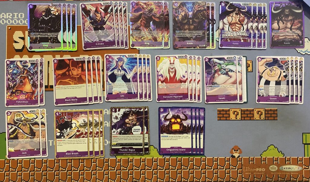 The deck derives its name from Kaido, a key character whose cards are central to the deck’s strategy. These cards carry the potential to KO multiple characters or attack directly, making them pivotal in the deck’s offense.